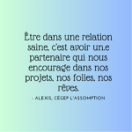 Au Cégep de L’Assomption se tient « La semaine de la Grande séduction » pour promouvoir la sexualité plaisante et positive qui contribue à renforcer les relations affectives et à favoriser le bien-être physique et émotionnel. Plusieurs activités sont offertes, lors de cette semaine thématique, qui permettent d’approfondir ses connaissances en matière de consentement, de plaisir, de relations égalitaires, de respect de l’autre et de relation sexuelle. En cultivant une approche ouverte et bienveillante de la sexualité, il est possible de construire une société plus inclusive, respectueuse et épanouissante pour tous.