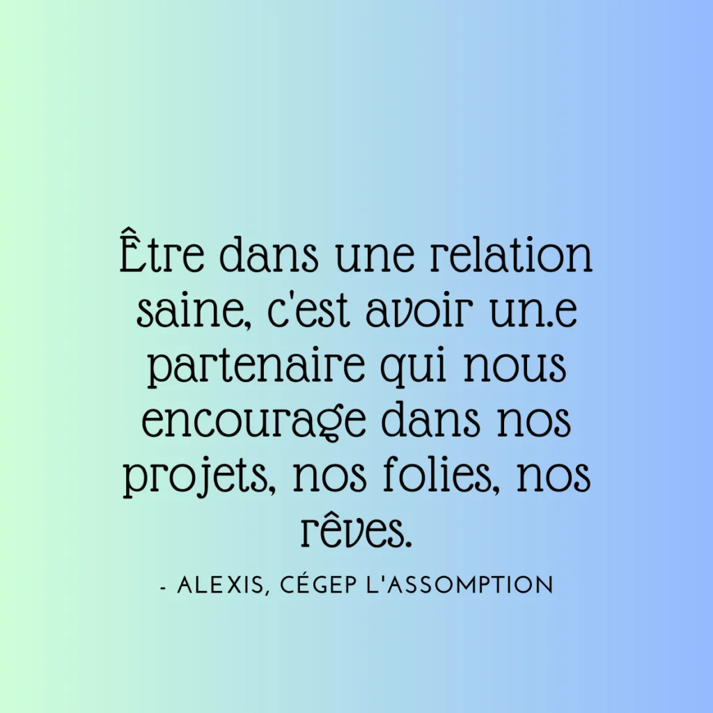 En somme, c’est se sentir valorisé·e et libre de prendre ses propres décisions et de partager ses opinions au sein de sa relation. Les notions de sécurité et de respect ne doivent jamais être remises en question. Bâtir une relation égalitaire affecte positivement d’autres aspects de la vie, dont la santé mentale.